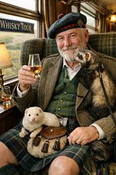 I may book my ferrets on the whisky train trip for my birthday if not do nothing special a private charity whisky train near my house I suspect they let me take the ferrets with me on it if possible, get my ferrets some £100's food on it .